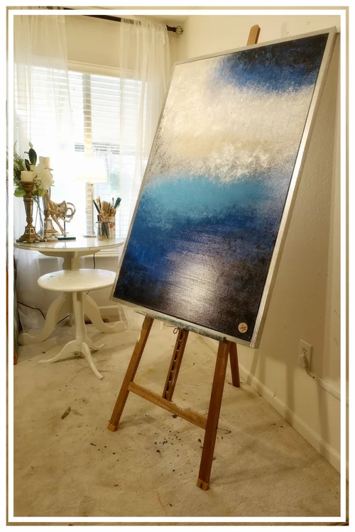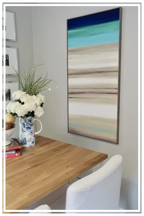 I tried to do a fun abstract and nothing sounds more relaxing than a beach color scheme. This one is also custom framed with a beach wood look. It is so perfect.