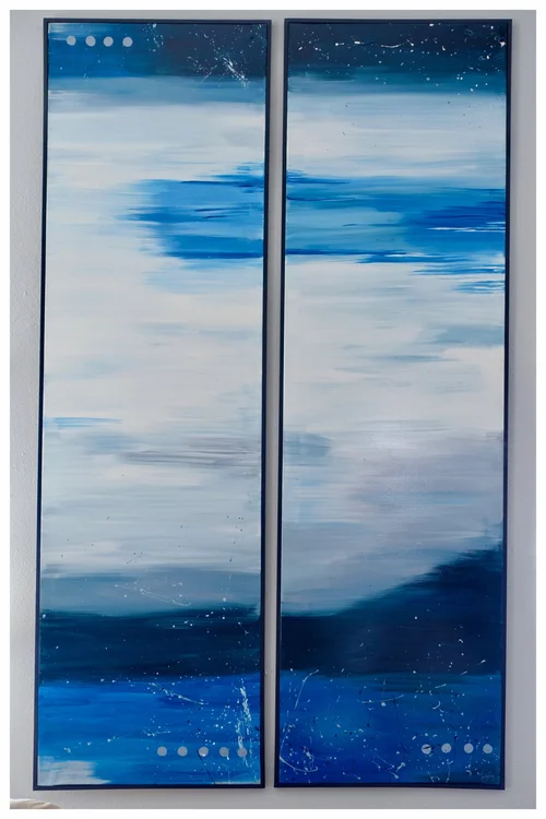 Do you see something in this painting? What’s funny, is that my intention was for only one canvas. My husband put it up on the way and mentioned that it would look best as a 2 canvas painting. So I went back to the studio and this was the result; as a result, my husbands favorite.