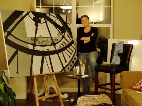 I had to build and paint this 3 canvas series in my garage to accommodate the size and distance down a stairwell. This is obviously my garage!